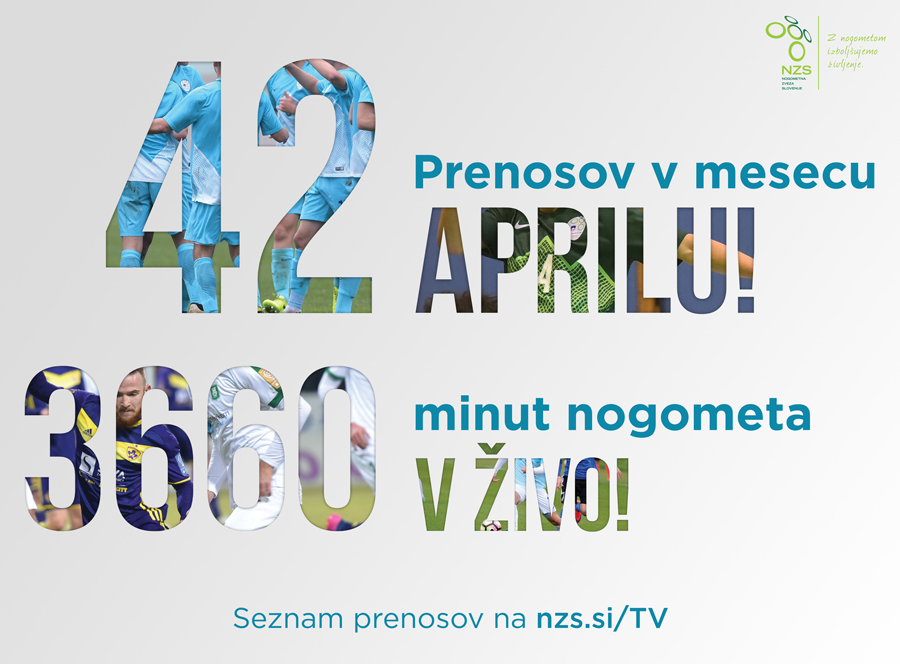 Ljubitelji slovenskega nogometa bodo v aprilu nedvomno prišli na svoj račun, saj si bo na različnih kanalih mogoče ogledati kar 42 nogometnih tekem oziroma 1,4 tekme na povprečen aprilski dan. 3.660 minut nogometa v živo bo zajelo kar 11 različnih tekmovanj, tako da se bo zagotovo našlo kaj zanimivega tudi za najbolj izbirčne.