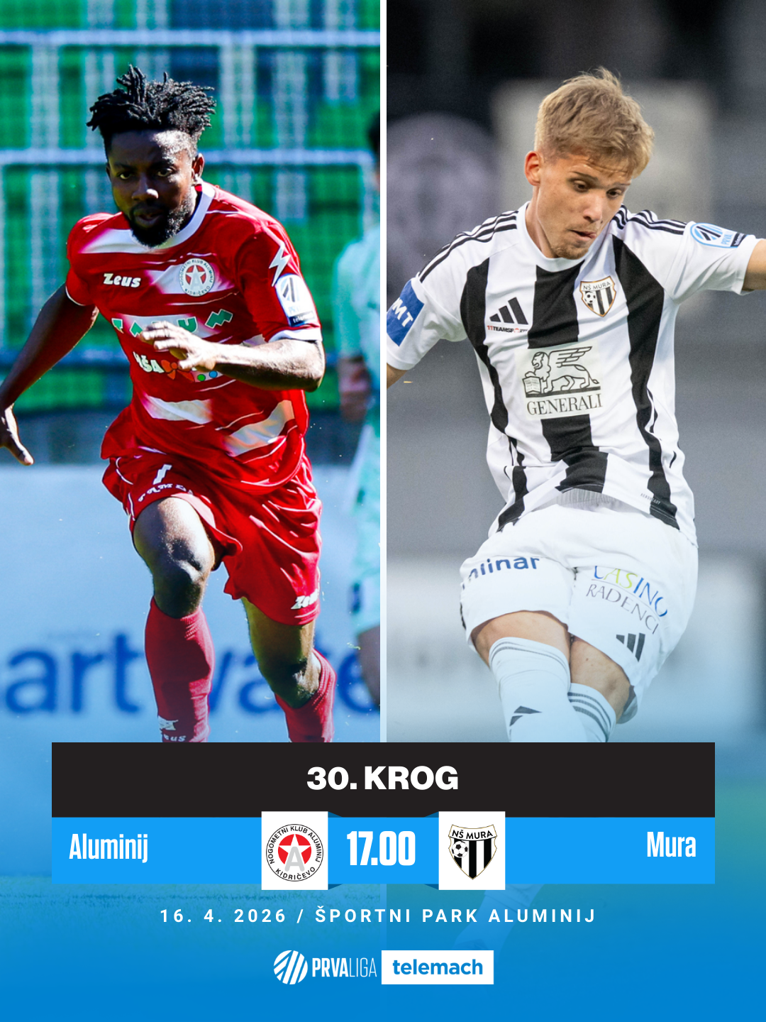Edino četrtkovo srečanje bo odigrano v šumi, kjer Aluminij pričakuje Muro. Kidričani si na vse kriplje prizadevajo, da bi prekinili serijo brez zmage, ki se vleče že vse od začetka marca. Na tej točki bi bili verjetno veseli že samo pozitivnega izida, ki se jim je izmikal tudi prejšnji konec tedna. Mrežo Olimpije so Štajerci zatresli iz pravzaprav edine resne priložnosti, ki so si jo pripravili, sicer pa so imeli od igre več domačini. Nov poraz je Aluminij na sedmem mestu še nekoliko utrdil v nekakšnem limbu – Radomlje mu bežijo za 6 točk, Mura zaostaja za 7; prav Sobočani so, kot zapisano, naslednji tekmec čete Jure Arsića. Bo ta vendarle prišla do točk?
