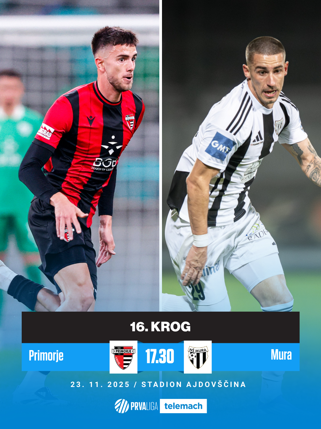 Po nedeljskem derbiju se bosta za točke pomerili še ekipi Primorja in Mure. Ajdovci so izgubili štiri zaporedne preizkušnje v Prvi ligi Telemach, Sobočani pa so pod taktirko Darjana Slavica neporaženi na zadnjih petih ligaških tekmah. Dvoboj v prestolnici burje bo izrednega pomena za obe ekipi. Prekmurci bi z zmago pobegnili na sedem točk naskoka, rdeče-črni pa bi se s slavjem povsem približali osmi ekipi prvenstva, predvsem pa bi povrnili samozavest pred zaključkom jesenskega dela prvenstva. Zasedba Milana Anđelkovića bo po dvoboju z Muro gostovala še v Kidričevem in Celju, zato bi bila zmaga več kot dobrodošla. Lahko sinovi burje po porazih z Bravom, Mariborom, Radomljami in Olimpijo prekinejo črno rezultatsko serijo?