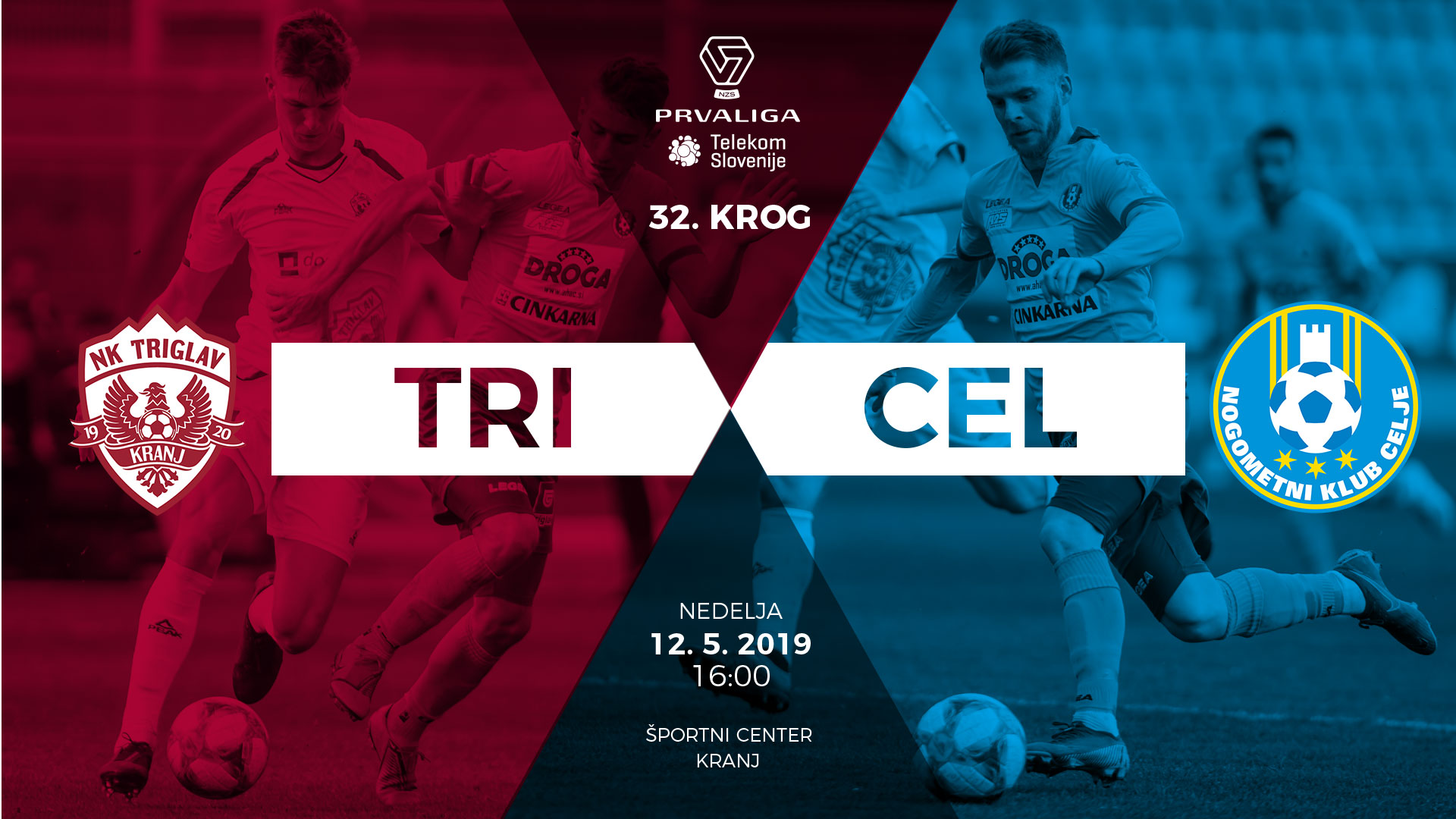 Zadnja tekma 32. kroga Prve lige Telekom Slovenije bo odigrana na Gorenjskem. Triglav gosti Celje, ki se bo v orlovem gnezdu pobiralo po remiju s Krškim. Točka je bila manj od pričakovanj grofov, ki bodo v Kranju lovili nove točke za želeno četrto mesto, Kranjčani pa potrebujejo točke v boju za obstanek v prvoligaški konkurenci. Moštvo Dejana Dončića po treh tekmah čakanja išče deseto zmago v letošnjem prvenstvu, nazadnje so orli klonili v Ljubljani. Začetek dvoboja z Olimpijo je sicer obetal presenečenje, a so gostitelji hitro po zadetku Luke Majcna prišli do izenačenja, v nadaljevanju dvoboja pa po preobratu slavili s 4:2. Kranjska zasedba je štiri zadetke prejela tudi na marčevskem gostovanju v knežjem mestu, Celjani pa so dobili zadnji dve tekmi s Triglavom. Gorenjci so bili boljši v poletnem spopadu, ko so v drugem polčasu padli kar štirje zadetki, bordo-beli pa so slavili z 1:3.