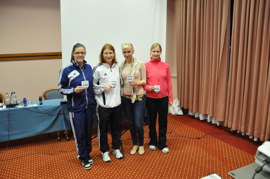 Na sliki FIFA sodnice oz. pomočnice sodnice Petra Bombek, Tanja Subotič, Aleksandra Česen in Petra Sever.
