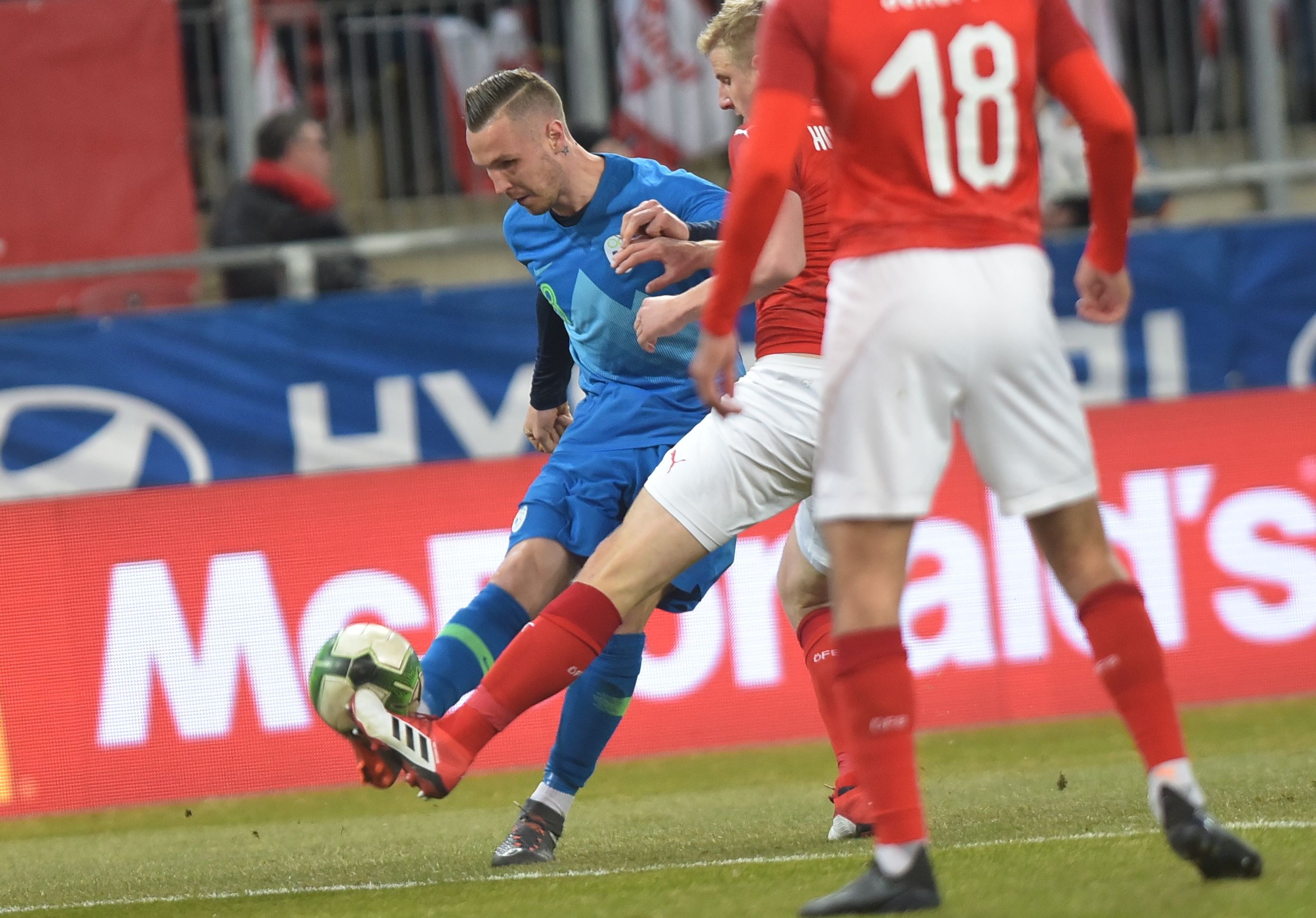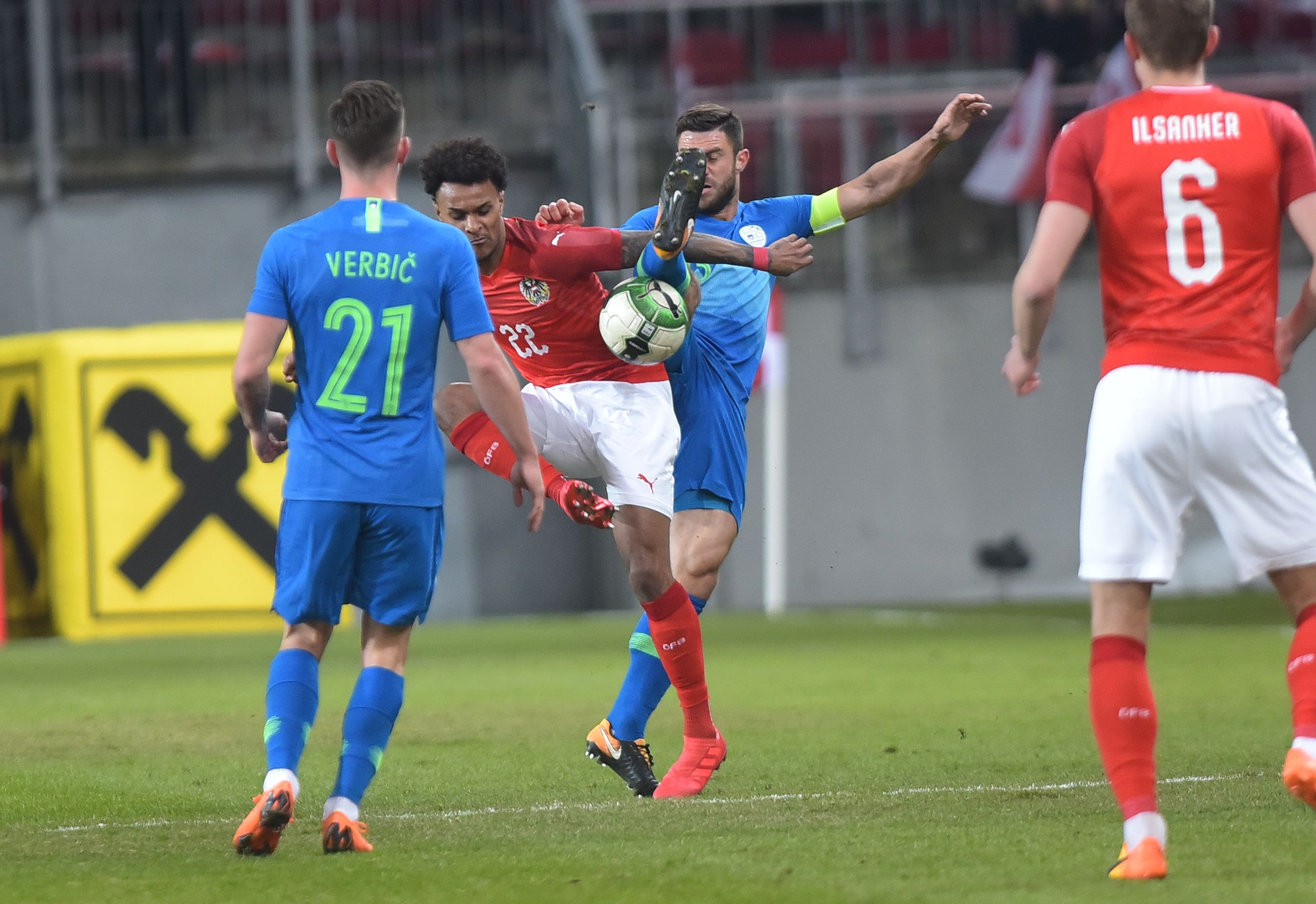 Slovenska vrsta je tudi pred očmi predsednika Evropske nogometne zveze Aleksandra Čeferina ero selektorja Tomaža Kavčiča odprla s porazom. Nogometaši Slovenije, ki so nastopili v novih dresih, so v tekmi s severnimi sosedi izgubili s 3:0. Avstrijci so bili nevarnejši nasprotnik, gostitelji pa so z zmago v medsebojnih obračunih izenačili na 1:1.