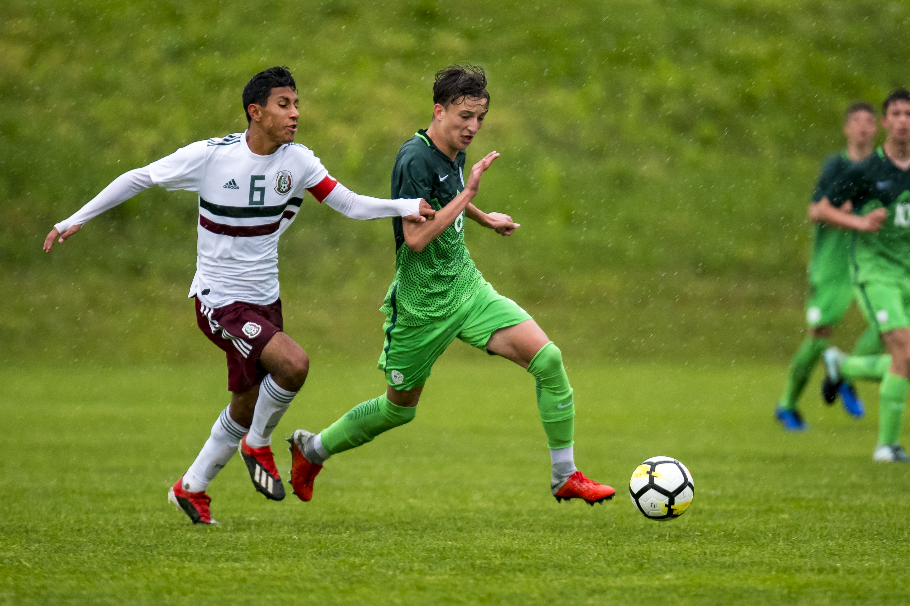 Slovenska reprezentanca do 15 let je močan mednarodni turnir narodov odprla v Ajdovščini, kjer je gostila izbrano vrsto Mehike. Slednja je v Slovenijo prispela v dobri formi in to potrdila že v 11. minuti, ko je po predložku z desne strani z glavo natančno meril Moreno. Slednji je povišal prednost v 19. minuti, potem ko se je odločil za strel z razdalje in presenetil slabo pripravljenega Dermastijo. Slovenija je že tri minute kasneje znižala zaostanek, ko je po hitrem in šolsko izpeljanem protinapadu zadel Černe, ki je postavil tudi rezultat polčasa.