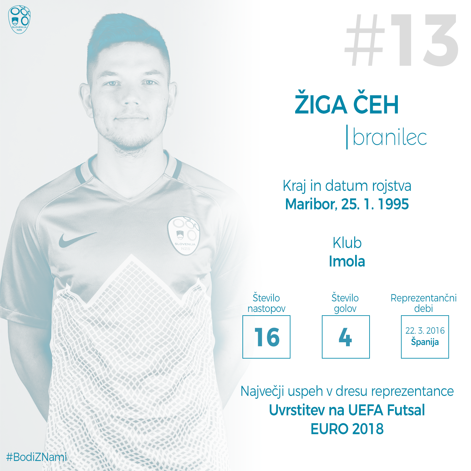 Evropsko prvenstvo v Sloveniji bo prvo tudi za 22-letnega Žigo Čeha, ki velja za mladega in talentiranega igralca, ki precej dobro razume igro, premore pa močan udarec z desnico. Do danes je zbral 16 nastopov v dresu z državnim grbom, prispeval je štiri gole. Prvič je nosil dres članske vrste 22. marca 2016 na tekmi proti Španiji, šestkratnim evropskim prvakom. Selektorja Andreja Dobovičnika je očitno prepričal, selektor računa nanj tudi to pot.