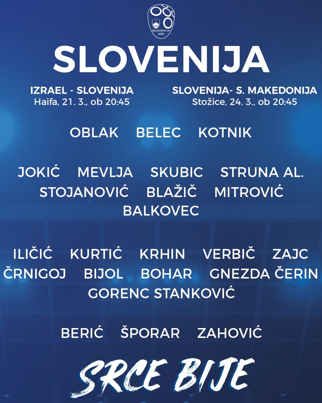 Kot je bilo pričakovati, se po daljši odsotnosti vrača vratar madridskega Atletica Jan Oblak. Na seznamu sicer ni večjih presenečenj, z dobrimi igrami sta si med drugimi poziv prislužila Adam Gnezda Čerin iz Domžal in Damjan Bohar iz Zaglebieja Lubina ter tudi Jon Gorenc-Stanković iz Huddersfield Towna.